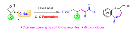 相關(guān)工作以題為“Mild C–C Bond Formation via Lewis Acid Catalyzed Oxetane Ring Opening with Soft Carbon Nucleophiles”(通過路易斯酸催化的氧雜環(huán)丁烷軟碳親核試劑開環(huán)反應(yīng)實(shí)現(xiàn)C-C成鍵)在線發(fā)表在《德國(guó)應(yīng)用化學(xué)》(Angew. Chem. Int. Ed.)上。常州大學(xué)為該論文的第一通訊單位,黃海博士為第一作者,在讀碩士張?zhí)煊顬榈诙髡?,孫建偉為論文的通訊作者。