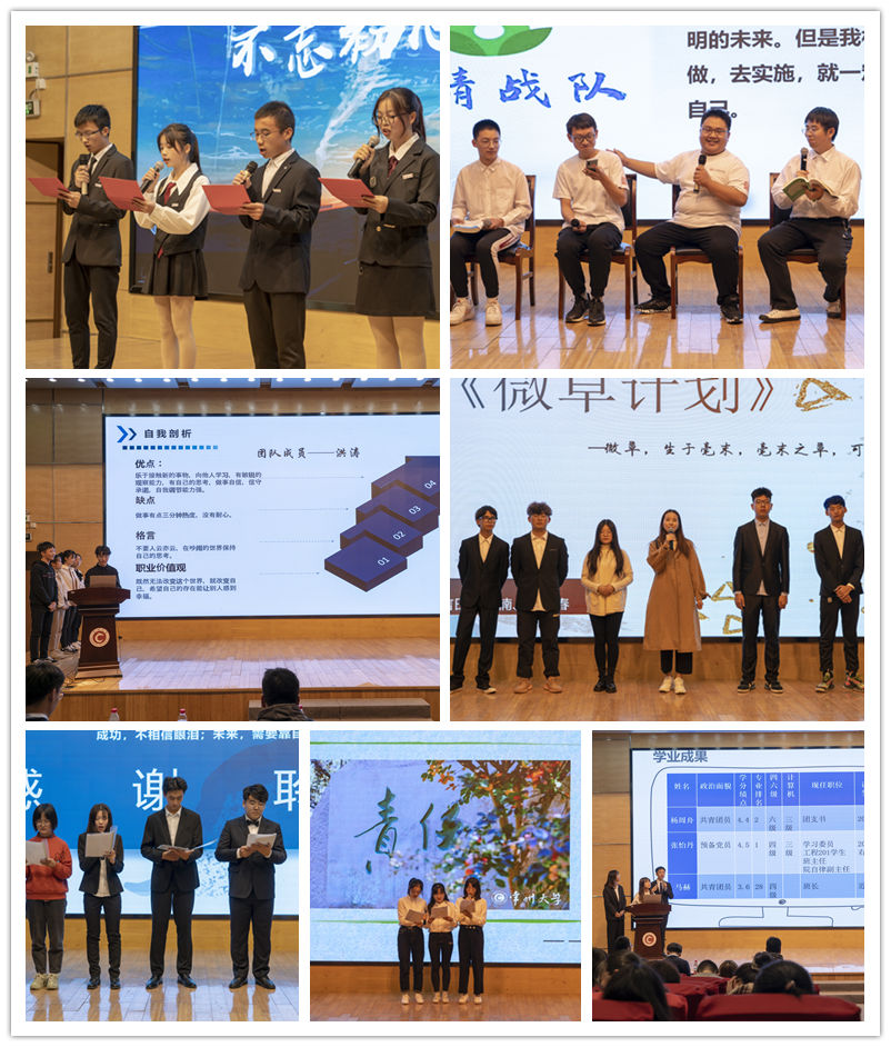本次學(xué)業(yè)規(guī)劃大賽全校共29支團(tuán)隊(duì)報(bào)名參賽,通過(guò)初賽的選拔,共有10支隊(duì)伍進(jìn)入決賽。決賽由個(gè)人學(xué)業(yè)規(guī)劃講解以及小組才藝展示兩個(gè)部分組成,參賽選手結(jié)合PPT從自我認(rèn)識(shí)、學(xué)業(yè)規(guī)劃以及制定行動(dòng)策略三個(gè)方面進(jìn)行闡述,深刻規(guī)劃剖析了自己隊(duì)伍及團(tuán)隊(duì)成員的優(yōu)劣勢(shì),突出了隊(duì)伍特點(diǎn),指明了學(xué)業(yè)未來(lái)的努力方向。通過(guò)近三個(gè)小時(shí)的比賽,“未來(lái)工程隊(duì)”以生動(dòng)流暢的演講以及合理的學(xué)業(yè)規(guī)劃設(shè)計(jì)獲得了本次比賽的一等獎(jiǎng);“星之隊(duì)”、“扶搖戰(zhàn)隊(duì)”獲得二等獎(jiǎng);“走千山戰(zhàn)隊(duì)”、“晚晴戰(zhàn)隊(duì)”、“微草戰(zhàn)隊(duì)”獲得三等獎(jiǎng)、“智聯(lián)戰(zhàn)隊(duì)”、“螢火戰(zhàn)隊(duì)”、“細(xì)雨戰(zhàn)隊(duì)”、“鳴海戰(zhàn)隊(duì)”獲得優(yōu)勝獎(jiǎng)。