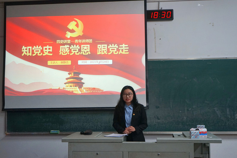 為進(jìn)一步推進(jìn)黨史學(xué)習(xí)教育,引導(dǎo)學(xué)生知史愛國,知史愛黨,4月20日18:30我院在W1202開展了以“知黨史、感黨恩、跟黨走”為主題的黨史學(xué)習(xí)教育。本次宣講由團(tuán)委副書記王博智主持,學(xué)生第二黨支部黨員唐靜杰主講,各班級代表參加。