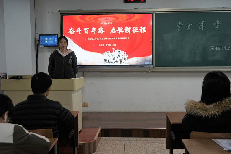 為貫徹落實習近平總書記關于黨史學習教育的重要論述,充分發(fā)揮“青年講師團”理論武裝“輕騎兵”的作用,把黨的科學理念在青年中落實,12月1日18:30,我院在W2312教室開展以“奮斗百年路,啟航新征程”為主題的四史講堂。本次四史講堂由青年講師團成員石婧主持。