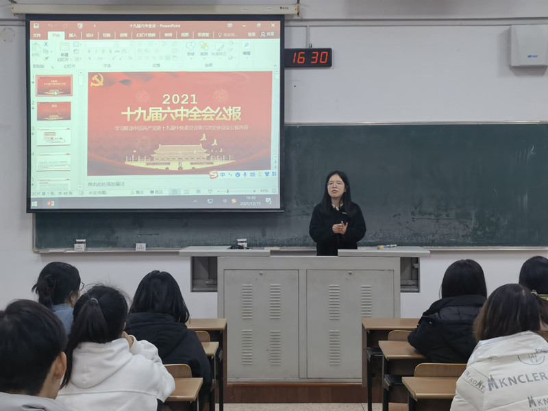 為深入學習貫徹黨的十九屆六中全會精神、思想精髓和重大意義,引領和帶動學院青年堅定不移聽黨話、跟黨走,關心青年思想狀況,引領青年思想認識,落實聯(lián)青工作要求,12月15日,院學生黨支部于w1210開展黨課活動,支部書記孫潘以《黨的十九屆六中全會精神》為題做專題黨課報告,學生黨員及入黨積極分子參加活動。