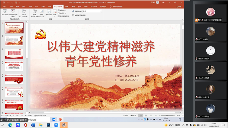 宣講伊始,主講人強調青年人應該深入了解建黨精神,以“堅持真理、堅守理想”筑牢時代新人的理想信念,以“踐行初心、擔當使命”奏響時代新人的奮斗,以“不怕犧牲、英勇斗爭”砥礪時代新人的意志品質,以“對黨忠誠、不負人民”把穩(wěn)時代新人的政治方向。偉大建黨精神是我們黨的寶貴精神財富,反映了革命先驅們?yōu)槿嗣裰\幸福、為民族謀復興的崇高理想、堅定信念、堅強意志和高尚情懷,對新時代青年成長具有思想引領價值導向和精神支撐等作用。青年大學生應該主動把個人的理想追求融入實現(xiàn)中華民族偉大復興的中國夢之中,以偉大建黨精神為引領,繼續(xù)開創(chuàng)不負革命先輩期望、無愧于歷史和人民的新未來。