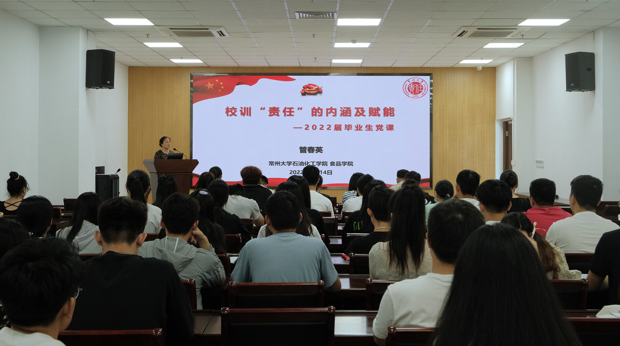 6月14日,石油化工學院開展2022屆畢業(yè)生黨員“畢業(yè)一課”活動,學院黨委書記管春英以“校訓‘責任’的內涵與賦能”為主題進行授課,畢業(yè)生黨員與學院全體輔導員聆聽黨課。