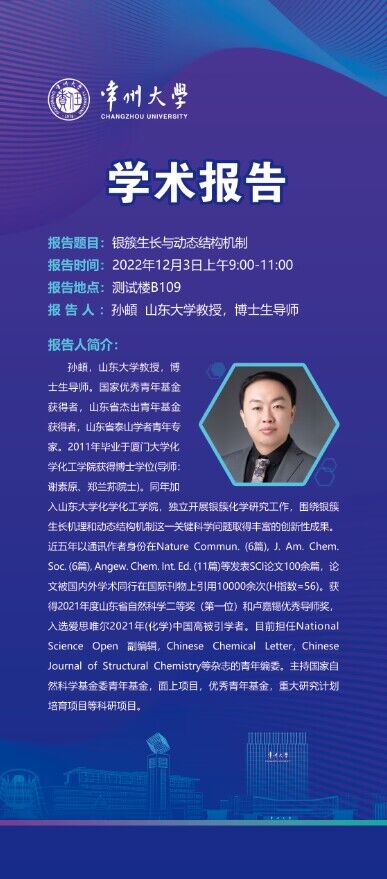 【學術報告】12月3日學術報告——孫頔教授——山東大學