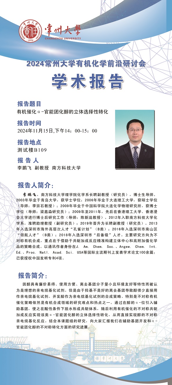 【學(xué)術(shù)報告】11月15日學(xué)術(shù)報告—李鵬飛副教授 南方科技大學(xué) ;朱燦青年研究員、錢輝副教授 復(fù)旦大學(xué)