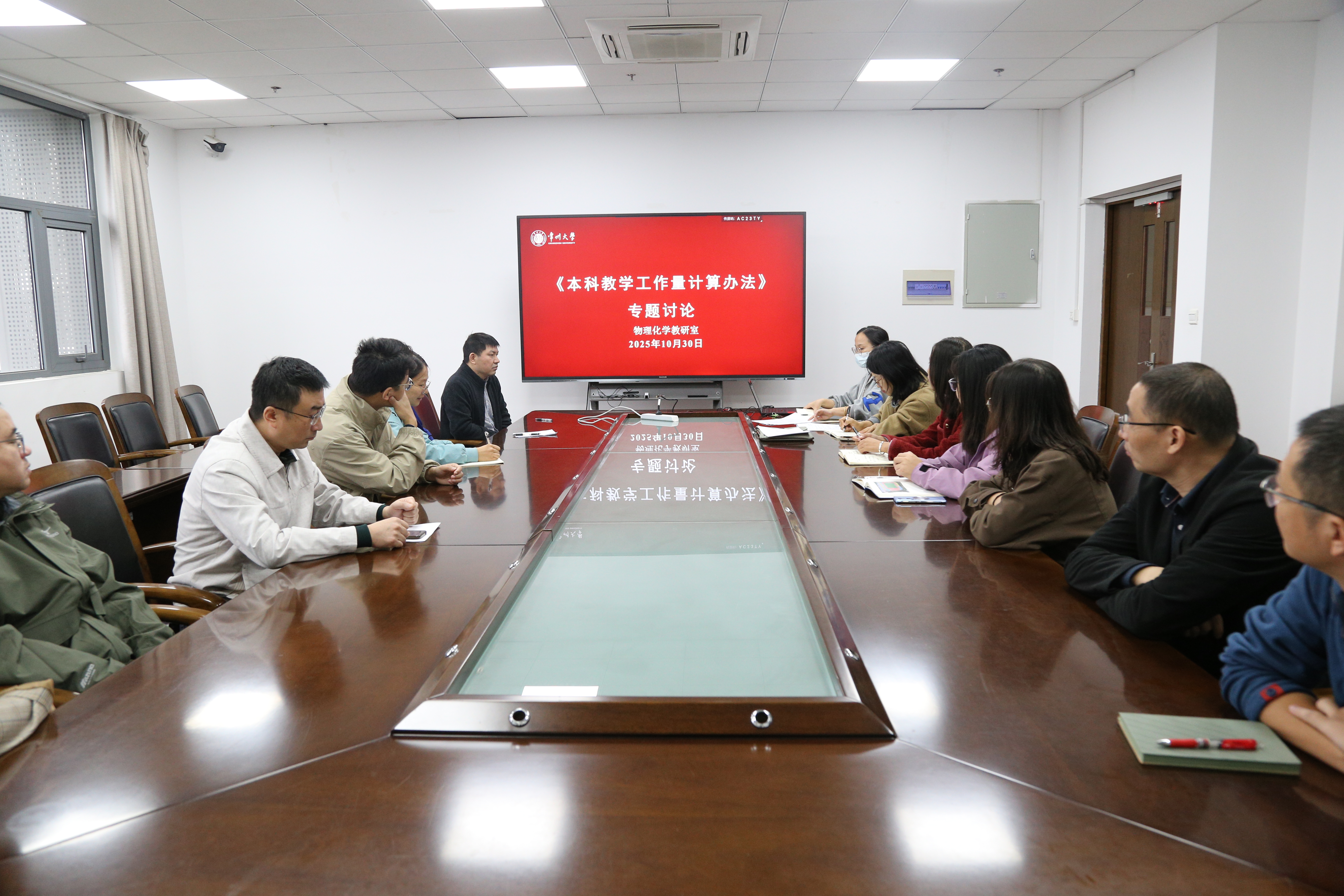 2025年10月30日,我院物理化學(xué)教研室在測試樓B613組織召開專題討論會,圍繞《本科教學(xué)工作量計(jì)算辦法》進(jìn)行深入研討,全體教研室教師參加。