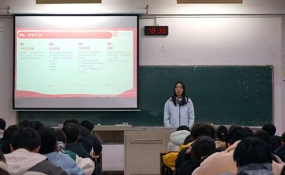 會(huì)上,兩位同學(xué)圍繞獎(jiǎng)學(xué)金類型、學(xué)習(xí)規(guī)劃與綜合素質(zhì)拓展等方面展開分享。她們系統(tǒng)介紹了學(xué)院設(shè)立的各類獎(jiǎng)學(xué)金,并基于自身經(jīng)驗(yàn),強(qiáng)調(diào)了“預(yù)習(xí)-聽課-復(fù)習(xí)”的高效學(xué)習(xí)閉環(huán),以及通過考證、競賽、學(xué)生工作與志愿服務(wù)等途徑提升綜合能力的重要性。她們鼓勵(lì)大家勇于嘗試、主動(dòng)爭取。