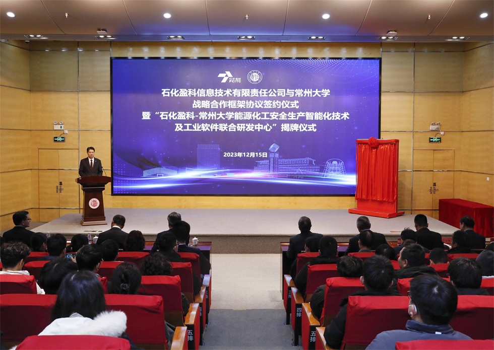 12月15日,石化盈科信息技術(shù)有限責(zé)任公司(以下簡(jiǎn)稱“石化盈科”)與常州大學(xué)戰(zhàn)略合作框架協(xié)議簽約儀式暨“石化盈科-常州大學(xué)能源化工安全生產(chǎn)智能化技術(shù)及工業(yè)軟件聯(lián)合研發(fā)中心”(以下簡(jiǎn)稱“聯(lián)合研發(fā)中心”)揭牌儀式在常州大學(xué)科教城校區(qū)文彰樓報(bào)告廳舉行。石化盈科董事長(zhǎng)、黨委書記周昌,黨委委員、副總裁張劉軍,常州大學(xué)黨委書記徐守坤,原黨委書記陳群,黨委副書記、校長(zhǎng)陳海群,副校長(zhǎng)晏成林出席活動(dòng)。石化盈科人力資源部、企改法律部、華東區(qū)域分公司、科技信息部、過(guò)程控制事業(yè)部,常州大學(xué)相關(guān)職能部門和學(xué)院負(fù)責(zé)人、教師和學(xué)生代表參加活動(dòng)。陳海群主持活動(dòng)。