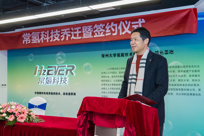 12月20日上午,常州大學(xué)孵化參股企業(yè)江蘇常氫科技工程研究院有限公司(以下簡(jiǎn)稱“常氫科技”)舉行喬遷及簽約儀式,黨委副書(shū)記、校長(zhǎng)陳海群,江蘇省化工行業(yè)協(xié)會(huì)會(huì)長(zhǎng)趙偉建,常州市城市建設(shè)(集團(tuán))有限公司總經(jīng)理劉龍才,常州市科教城管委會(huì)副主任路軍方,常州科教城投資控股集團(tuán)有限公司黨委書(shū)記、董事長(zhǎng)錢立鋒出席活動(dòng)。科教城管委會(huì)、常州大學(xué)、常州城建集團(tuán)、投資機(jī)構(gòu)等單位負(fù)責(zé)人參加活動(dòng)。