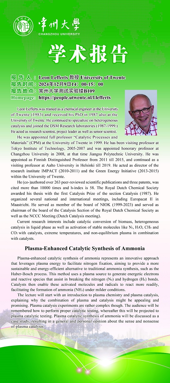 | 【學(xué)術(shù)報(bào)告】12月9日學(xué)術(shù)報(bào)告—Leon Lefferts教授、 Jimmy Alexander Faria Albanese教授 University of Twente |
