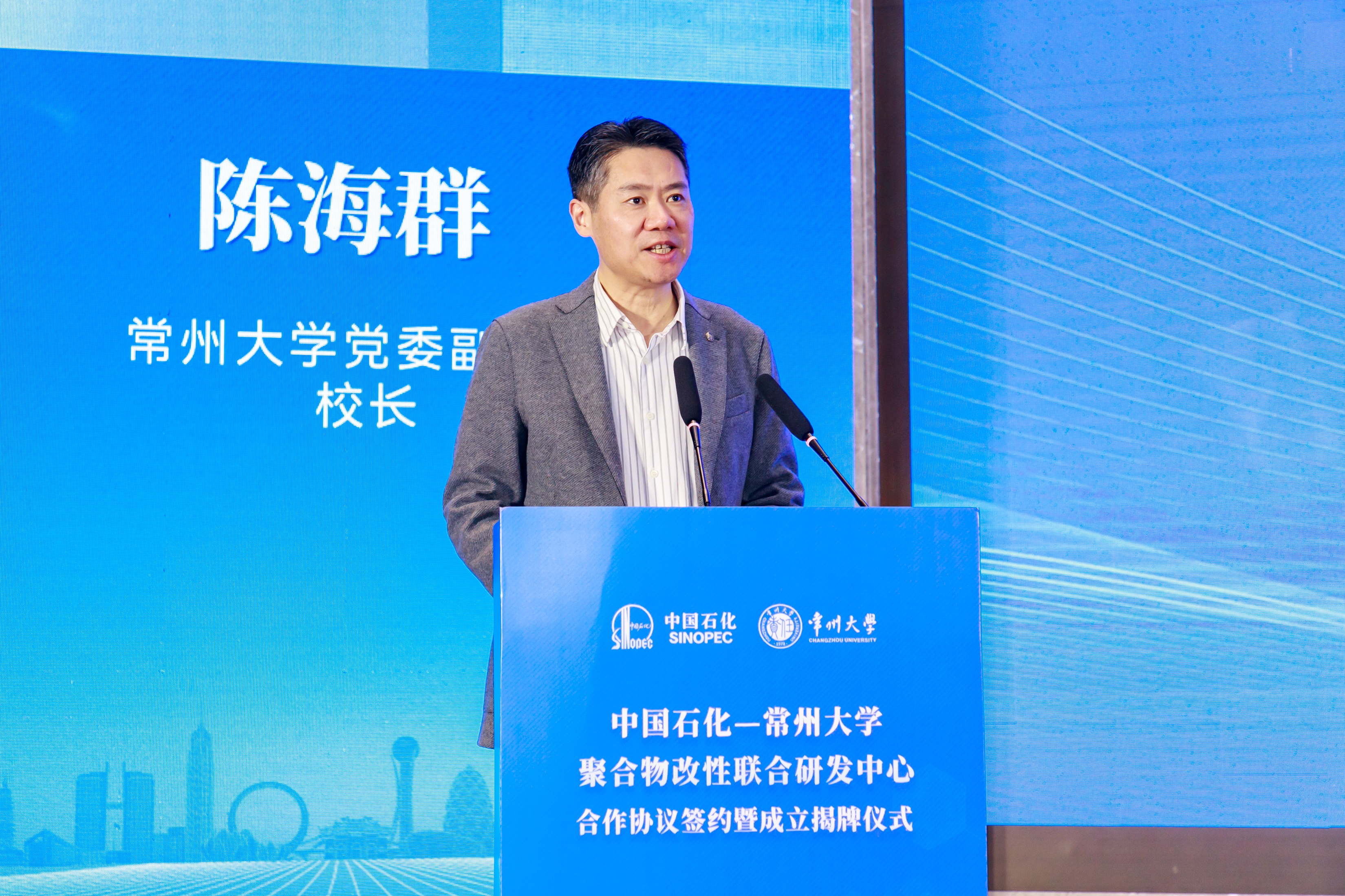 陳海群對長期以來關(guān)心支持常州大學(xué)發(fā)展的中國石化和常州市領(lǐng)導(dǎo)們表示衷心的感謝。他指出,此次聯(lián)合研發(fā)中心能夠落地,離不開“天時”“地利”“人和”?!疤鞎r”方面,順應(yīng)了國家戰(zhàn)略性新興產(chǎn)業(yè)布局發(fā)展,國家給予了高度重視和政策支持;“地利”方面,常州正在推動新能源之都全方位崛起,具備了良好的產(chǎn)業(yè)基礎(chǔ)和區(qū)位優(yōu)勢;“人和”方面,中國石化與常州大學(xué)在學(xué)科交流、科技創(chuàng)新、人才培養(yǎng)方面有著深厚的合作基礎(chǔ),始終攜手共贏共進。此次聯(lián)合研發(fā)中心的成立,將進一步推動科技創(chuàng)新和產(chǎn)業(yè)創(chuàng)新深度融合,為中國石化和常州市高質(zhì)量發(fā)展貢獻科技力量。