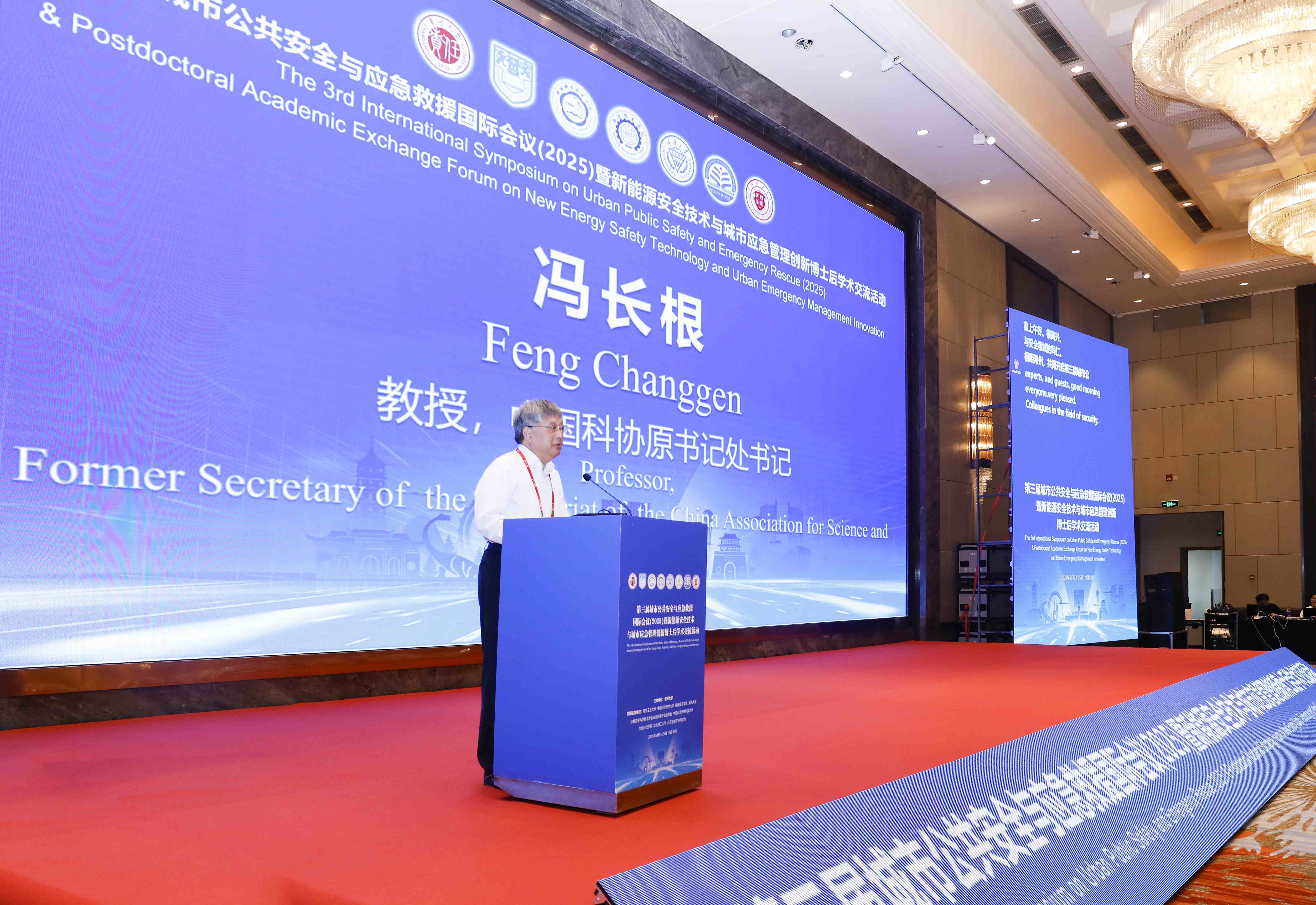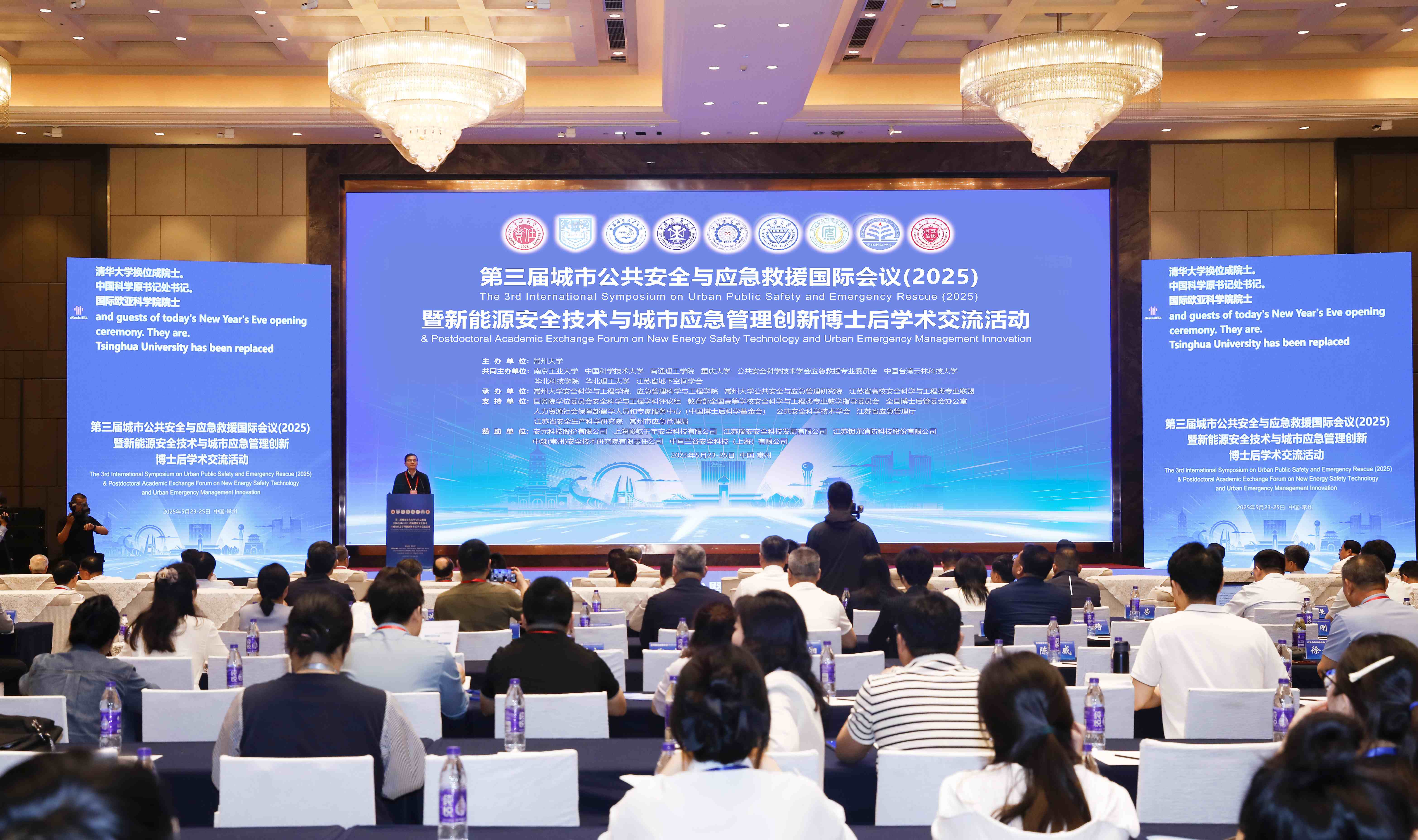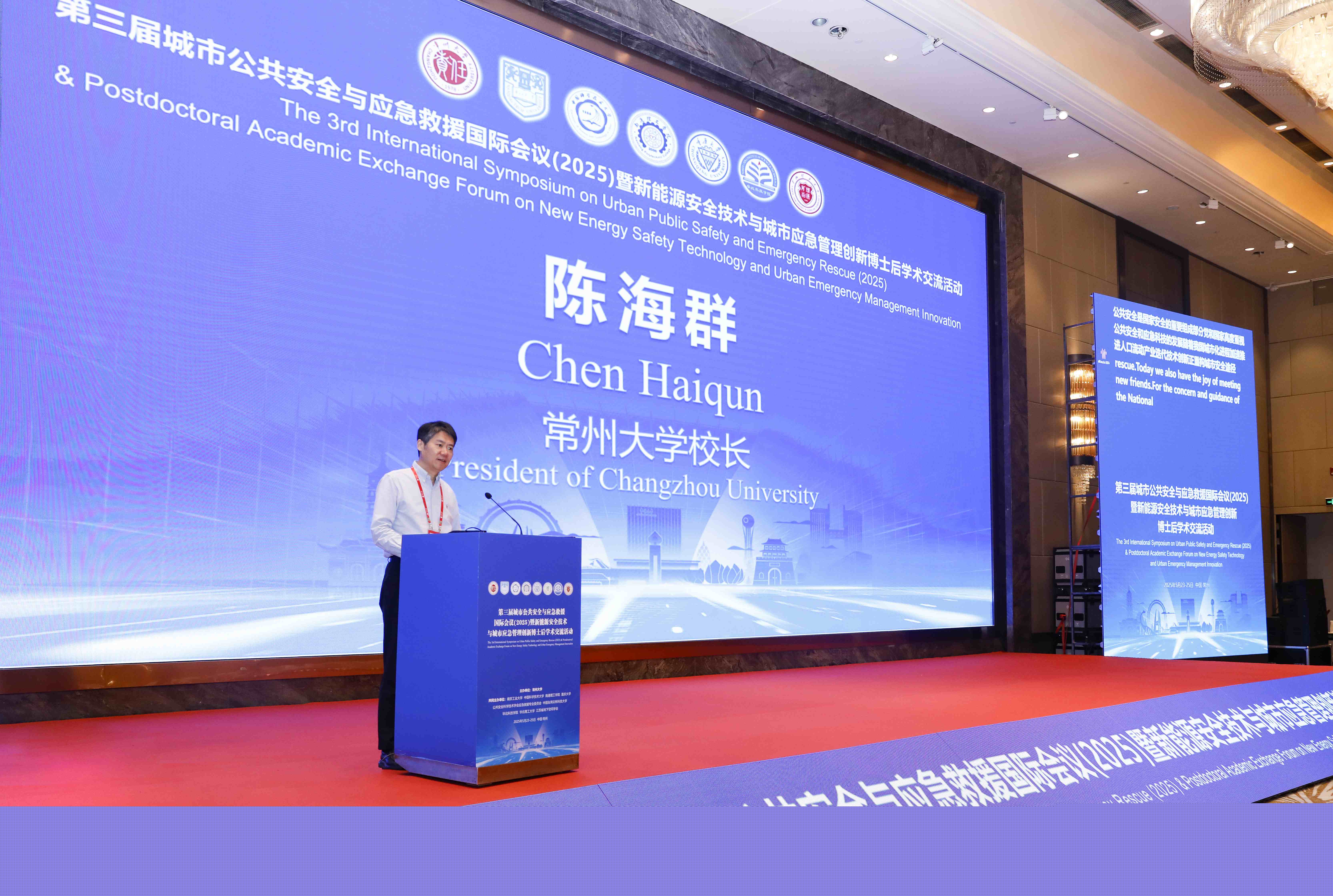 5月23日至25日,由常州大學(xué)主辦,南京工業(yè)大學(xué)、中國科學(xué)技術(shù)大學(xué)、南通理工學(xué)院、重慶大學(xué)、公共安全科學(xué)技術(shù)學(xué)會(huì)應(yīng)急救援專業(yè)委員會(huì)、中國臺(tái)灣云林科技大學(xué)、華北科技學(xué)院、華北理工大學(xué)和江蘇省地下空間學(xué)會(huì)共同主辦,常州大學(xué)安全科學(xué)與工程學(xué)院 應(yīng)急管理科學(xué)與工程學(xué)院、常州大學(xué)公共安全與應(yīng)急管理研究院和江蘇省高校安全科學(xué)與工程類專業(yè)聯(lián)盟承辦的第三屆城市公共安全與應(yīng)急救援國際會(huì)議暨新能源安全技術(shù)與城市應(yīng)急管理創(chuàng)新博士后學(xué)術(shù)活動(dòng)在常州召開。中國工程院院士、清華大學(xué)公共安全研究院院長(zhǎng)范維澄,中國科協(xié)原書記處書記、國際歐亞科學(xué)院院士馮長(zhǎng)根,江蘇省人力資源和社會(huì)保障廳副廳長(zhǎng)封春晴,江蘇省應(yīng)急管理廳原總工程師、江蘇省安全生產(chǎn)科學(xué)技術(shù)學(xué)會(huì)會(huì)長(zhǎng)蘇斌,華北科技學(xué)院、應(yīng)急管理大學(xué)(籌)校長(zhǎng)任云生,中國礦業(yè)大學(xué)(北京)副校長(zhǎng)王凱,青島理工大學(xué)副校長(zhǎng)陳連軍,以及來自法國、美國、荷蘭、中國香港、中國臺(tái)灣等多個(gè)國家和地區(qū)的專家學(xué)者300余人出席會(huì)議,會(huì)議通過網(wǎng)絡(luò)直播,累計(jì)在線人數(shù)6萬余人。常州大學(xué)黨委副書記、校長(zhǎng)陳海群出席活動(dòng)并致辭,副校長(zhǎng)晏成林主持大會(huì)開幕式。 第三屆城市公共安全與應(yīng)急救援國際會(huì)議暨新能源安全技術(shù)與城市應(yīng)急管理創(chuàng)新博士后學(xué)術(shù)活動(dòng)現(xiàn)場(chǎng) 開幕式上,陳海群介紹了常州大學(xué)發(fā)展概況,并希望以此次學(xué)術(shù)會(huì)議為契機(jī),廣泛凝聚共識(shí),拓展合作網(wǎng)絡(luò),積極打造學(xué)科交叉創(chuàng)新平臺(tái),重點(diǎn)突破智慧應(yīng)急、新能源安全等關(guān)鍵技術(shù),在共建“城市安全聯(lián)合實(shí)驗(yàn)室”“應(yīng)急技術(shù)聯(lián)合研究中心”及高端智庫等方面形成協(xié)同合力。