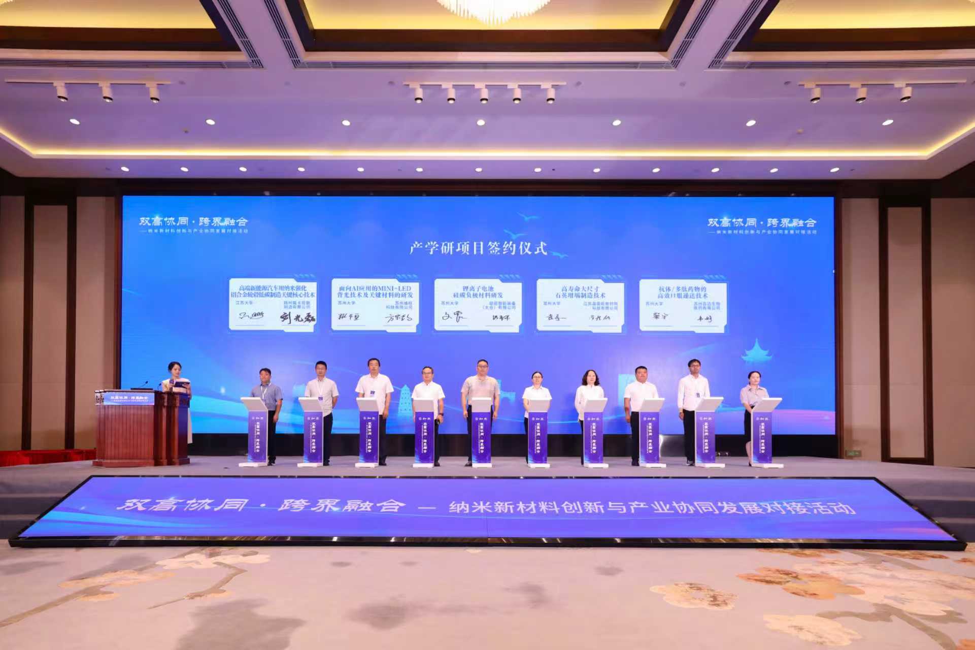 蘇州納米科技協(xié)同創(chuàng)新中心與全國高校先進(jìn)材料區(qū)域技術(shù)轉(zhuǎn)移轉(zhuǎn)化中心(江蘇)簽署合作協(xié)議,中國藥科大學(xué)等6所高校協(xié)同創(chuàng)新中心與全國高校生物醫(yī)藥區(qū)域技術(shù)轉(zhuǎn)移轉(zhuǎn)化中心(江蘇蘇州)達(dá)成共建共識,10個(gè)校企合作項(xiàng)目同步簽約,其中我校光伏科學(xué)與工程協(xié)同創(chuàng)新中心、先進(jìn)催化與綠色制造協(xié)同創(chuàng)新中心分別與江蘇晶盛旺新材料科技有限公司、中石化南京化工研究院有限公司簽約合作項(xiàng)目。常州大學(xué)等江蘇高校納米新材料領(lǐng)域多項(xiàng)重大科技成果同步發(fā)布,涵蓋光伏、生物醫(yī)藥、環(huán)境治理、半導(dǎo)體材料等關(guān)鍵領(lǐng)域。