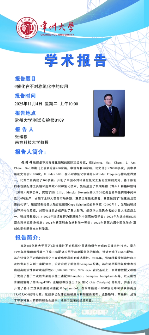 【學術報告】11月4日自然與合成有機化學研究院學術報告——張緒穆教授 南方科技大學