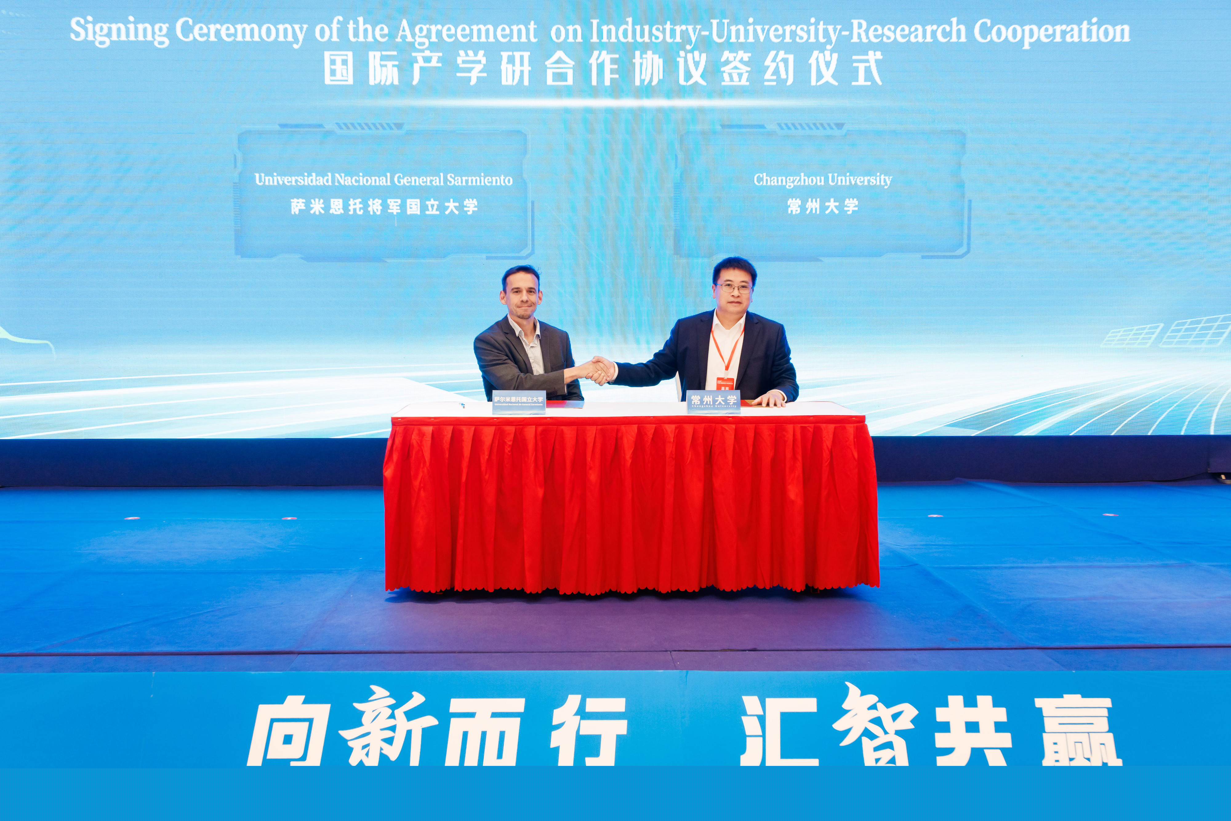 開幕式上舉行了常州市工程師學(xué)會成立揭牌儀式;常州大學(xué)與薩米恩托將軍國立大學(xué)簽署了國際產(chǎn)學(xué)研合作協(xié)議。 常州市工程師學(xué)會揭牌儀式 國際產(chǎn)學(xué)研合作協(xié)議簽約儀式